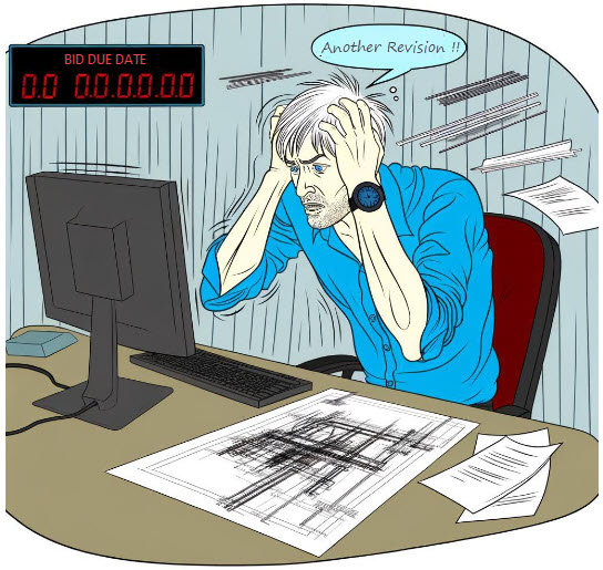 Estimating is tough and requires nerves of steel. I remember working with a seasoned career estimator who had become a good friend years ago. He was leading a very high-profile, large-scale project. Already working on a tight schedule in a high-pressure environment, he got a new set of revised plans. These plans were hundreds of pages long, and none of them were marked to show changes. He had the impossible task of finding any changes and updating his bid accordingly. Sadly, due to this added stress, my friend suffered a fatal heart attack.
